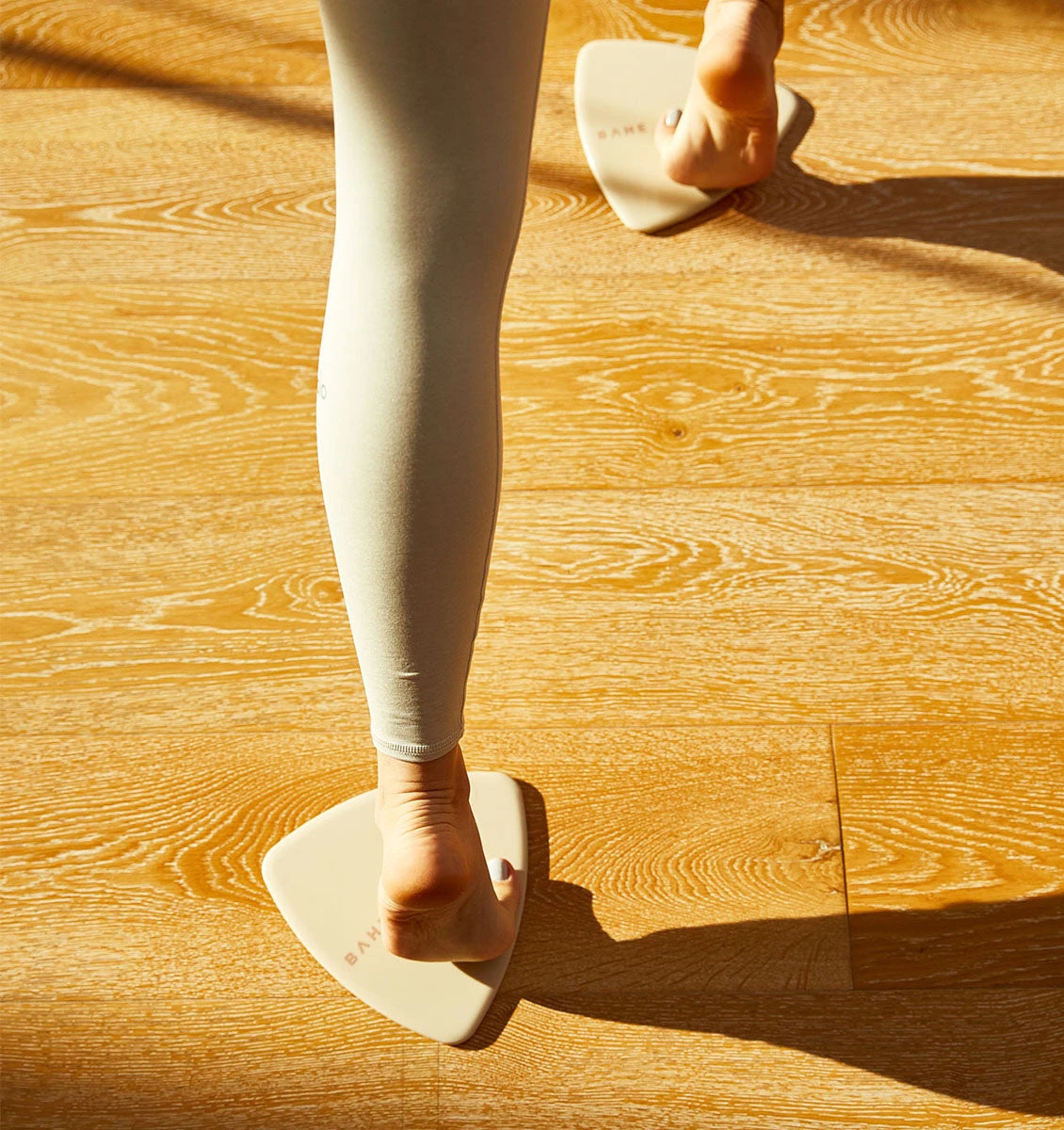 Add an extra dimension and challenge to any pilates or barre workout with these BAHE Flow Sliders – Dusty Beige.
