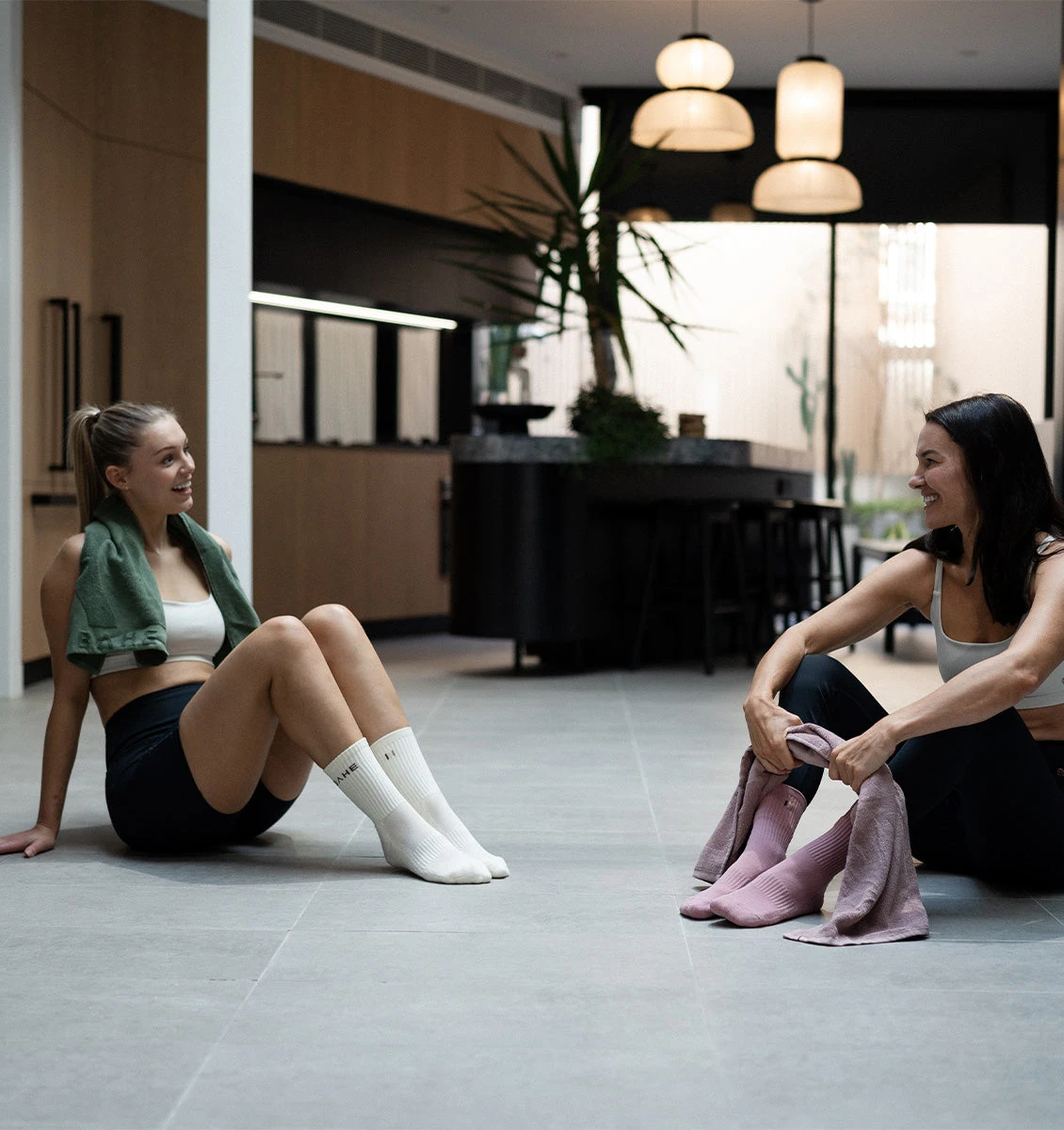 - Includes: BAHE Studio Sweat Towel, BAHE Studio Grippy Crew Socks