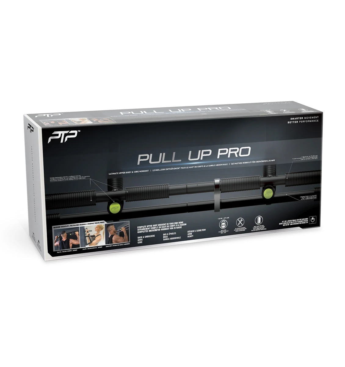 The PTP Pull-Up Bar Pro is ultimate indoor pull up bar system that provides a complete range of upper body & core exercises. These can all be done in the convenience of your own home.